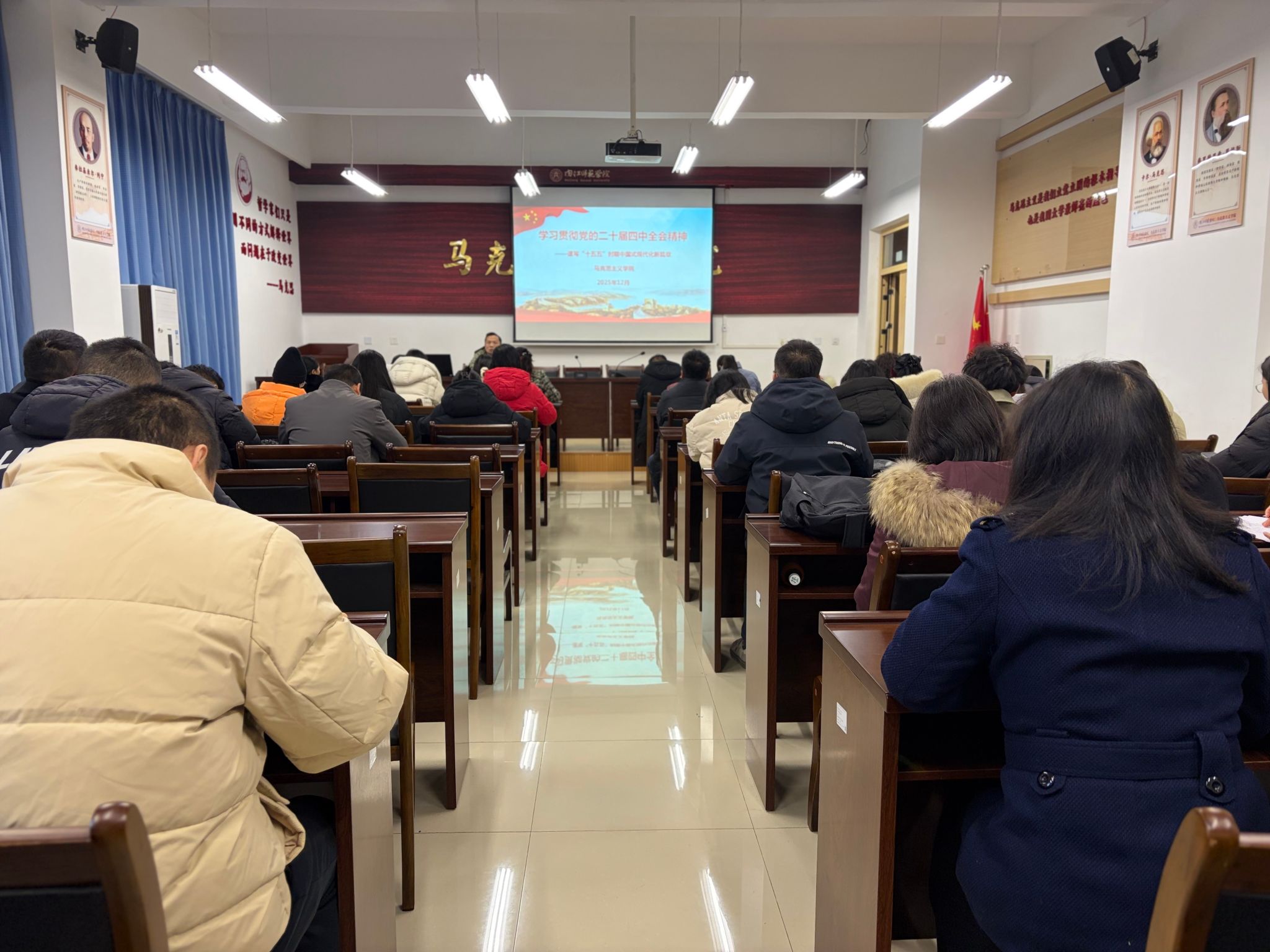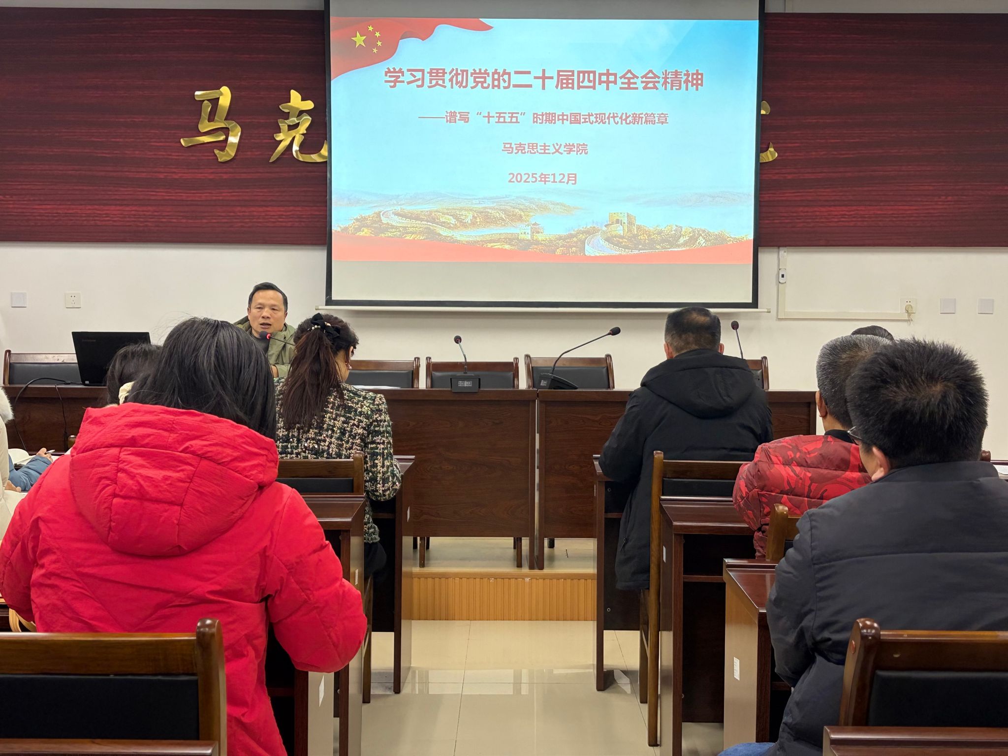 根据学校党委《关于组织“理响内师”理论宣讲团开展党的二十届四中全会精神宣讲的通知》要求,12月22日,学院党委在弘文楼242会议室组织开展学习党的二十届四中全会精神专题讲座。讲座由学校“理响内师”理论宣讲团成员、马克思主义学院院长谭安富主讲。