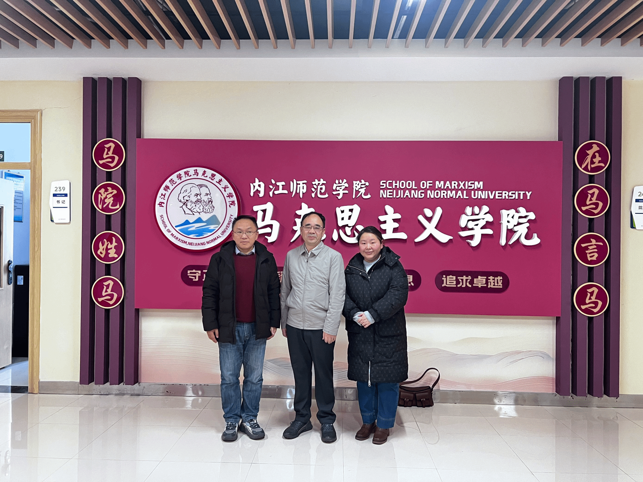 2026年1月5日,四川师范大学马克思主义学院党委书记胡尚峰一行赴内江师范学院马克思主义学院开展交流活动。此次学习交流旨在深化校际合作,共谋马克思主义学院高质量发展之路,推动双方在党建引领下的学科建设、课程改革、人才队伍建设以及教育教学创新等方面的工作。