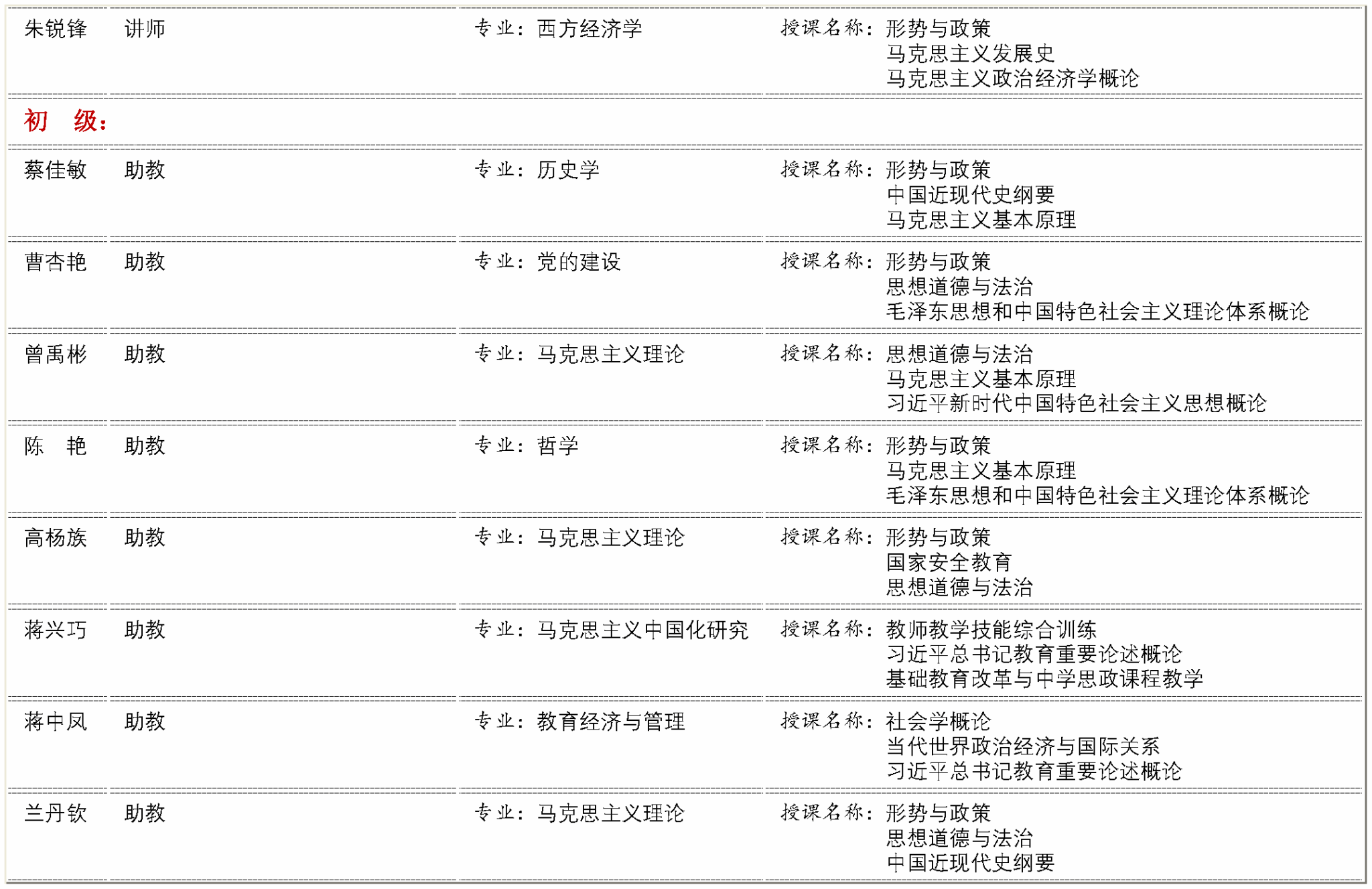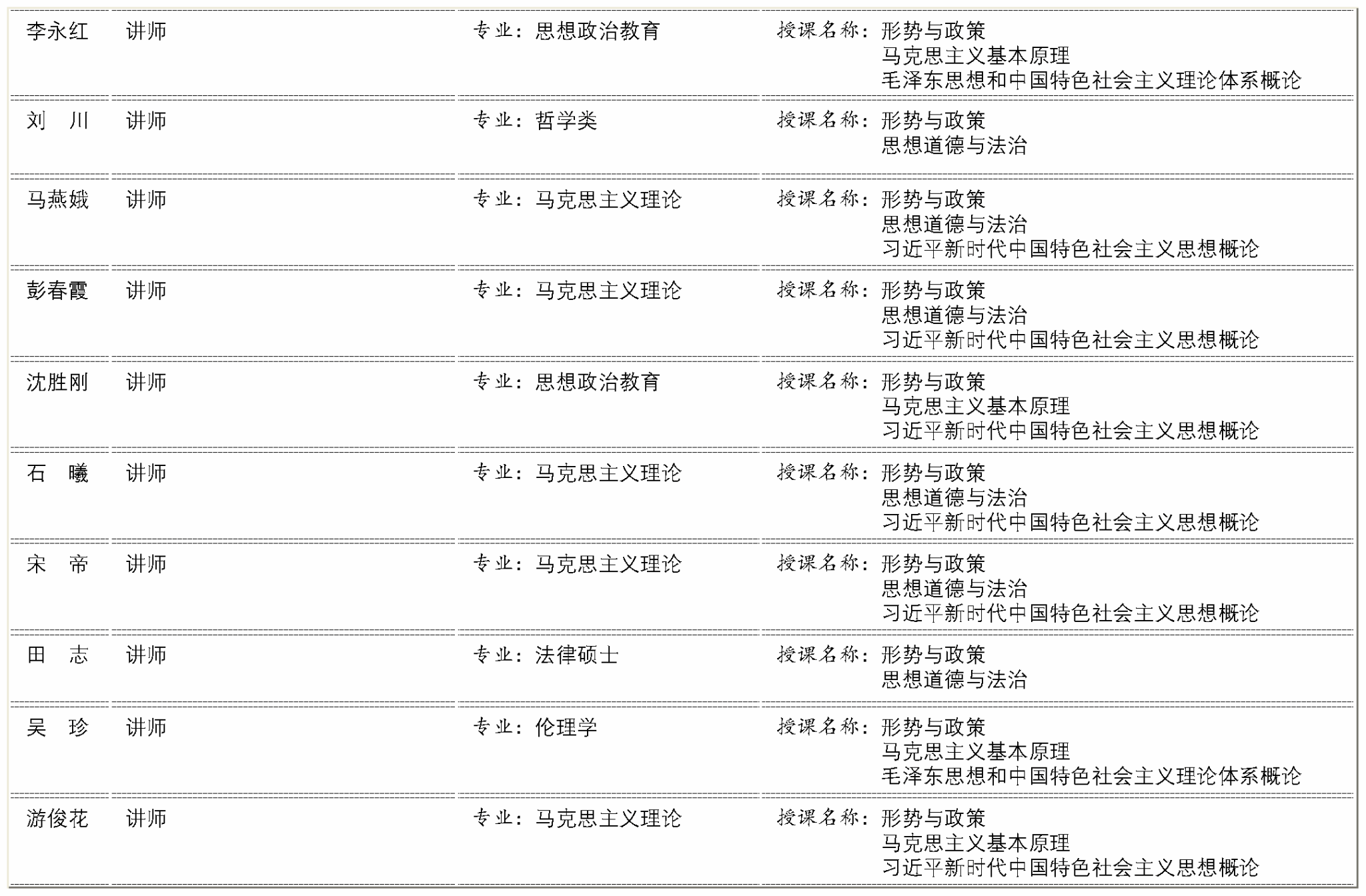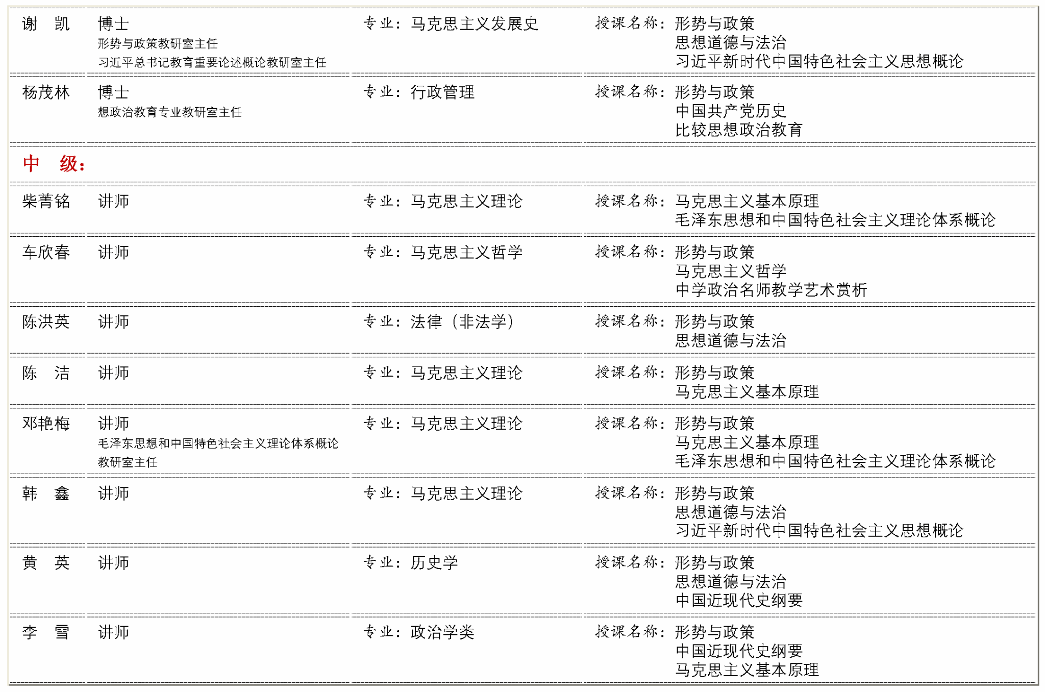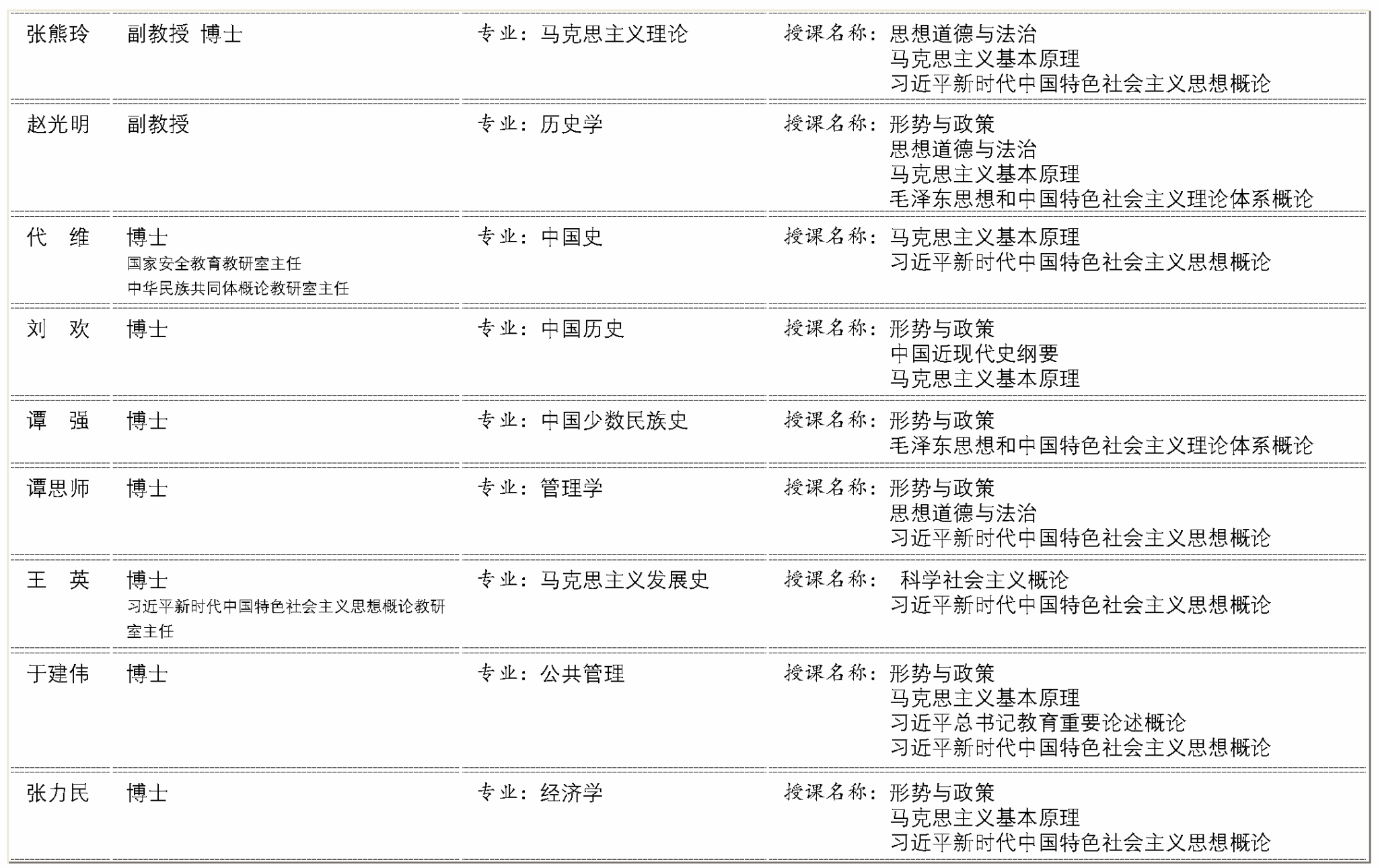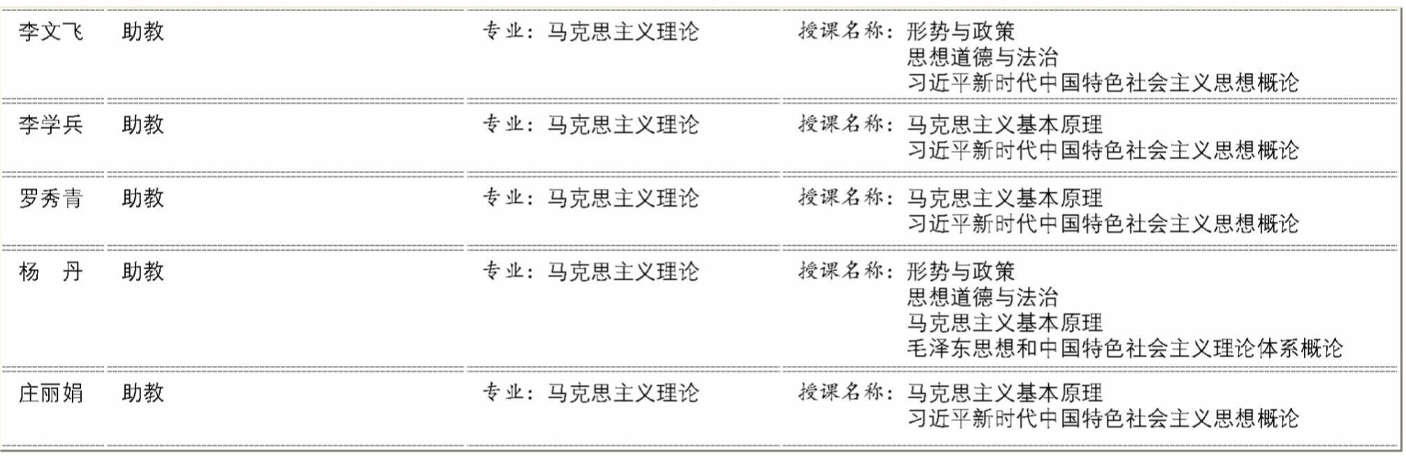 马克思主义学院专职教学科研队伍