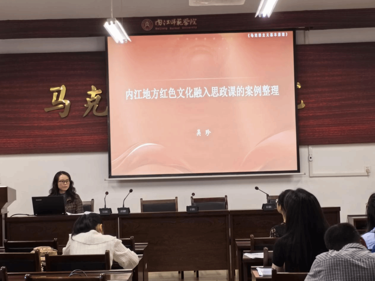 吴珍老师围绕“内江红色文化融入思政课”主题进行说课展示。她系统介绍了如何将地方红色文化资源有效融入思政教学,重点展示了运用AI技术对红色遗址进行数字化重现的教学设计。该方案通过构建沉浸式学习场景,引导学生在探究历史规律中实现价值认同,夯实信仰根基。