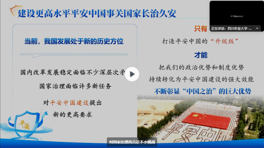 10月18日上午,形势与政策教研室继续组织全体任课教师,通过线上方式参加了由四川省高校“形势与政策”课教学指导委员会指导、四川省形势与政策课程虚拟教研室主办的云端集体备课会。本次集体备课会的主讲教师来自省内三所高校。其中,来自西南科技大学杨毅丰博士分享了“纪念抗战胜利 坚定民族信念”这一专题,四川农业大学的赵海伦、四川信息职业技术学院的邓丽华,两位老师围绕“聚焦建设更高水平平安中国”专题,分别进行了说课。三位说课老师都重点分享了课程教学设计与教学思路,同时结合自身多年的教学经验,选取丰富的教学案例,同时融入社会热点事件,紧扣“强知识、重能力、厚素养”三层维度,充分体现了“形势与政策”课程的时效性与针对性。最后,四川农业大学马院副院长邱高会教授和成都理工大学马院副院长赵如教授就三位老师的说课专题分别进行了点评。