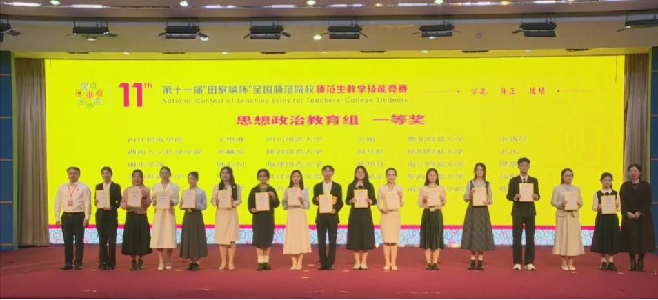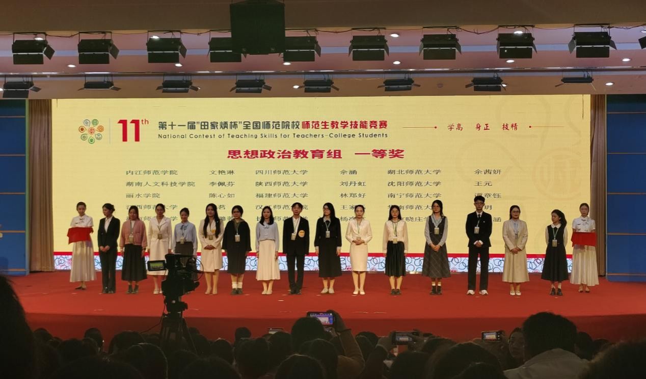 2025年11月30日,我院本科2022级思想政治教育专业文艳琳同学获第十一届“田家炳杯”全国师范院校师范生教学技能竞赛高中政治组一等奖。