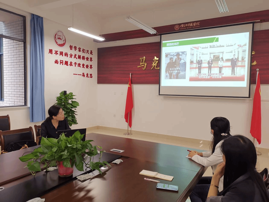 杨雪梅教授带领大家学习党的二十大报告,重点学习了党的二十大报告中提出的新提法、新论断、新思想,并着重强调了应将过去5年工作和新时代10年伟大变革的重大意义、习近平新时代中国特色社会主义思想的世界观和方法论、以中国式现代化全面推进中华民族伟大复兴的使命任务等重要内容融入课堂教学中。
