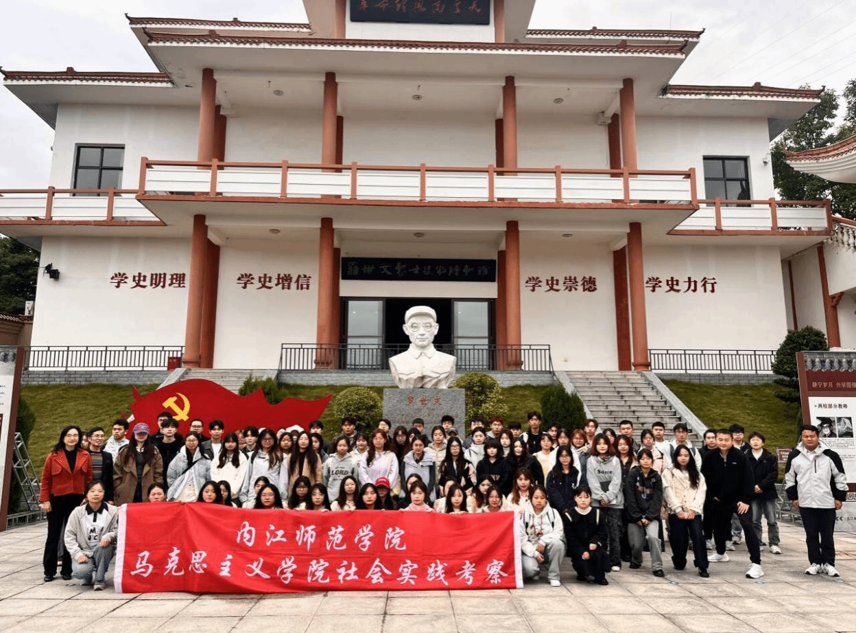 教学路线经过精心设计,以“理想信念—劳动创造—真理追求”为认知脉络,实现理论教学与地方文化的深度融合。在罗世文烈士史料陈列馆,师生通过了解这位内江籍先烈的英雄事迹,感悟到坚定信仰的力量。红色文化成为最鲜活的教材,帮助学生从情感认同升华至理论理解,深化了对马克思主义群众史观的认识。在威远煤矿工业遗址,师生走进承载几代人工矿记忆的现场。矿井设施、蒸汽机车等工业遗存,无声地讲述着劳动创造历史的厚重篇章。同学们在此直观体会到马克思主义关于“生产力与生产关系”的原理,从本土工业文化中领悟到劳动价值的真谛。在范长江纪念馆,师生重温了这位从内江走出的新闻巨匠追求真理、实事求是的一生。他“深入实际、调查研究”的精神,是马克思主义认识论的生动体现,激励着学生在新时代坚守求真之路,勇担传播真理的时代使命。