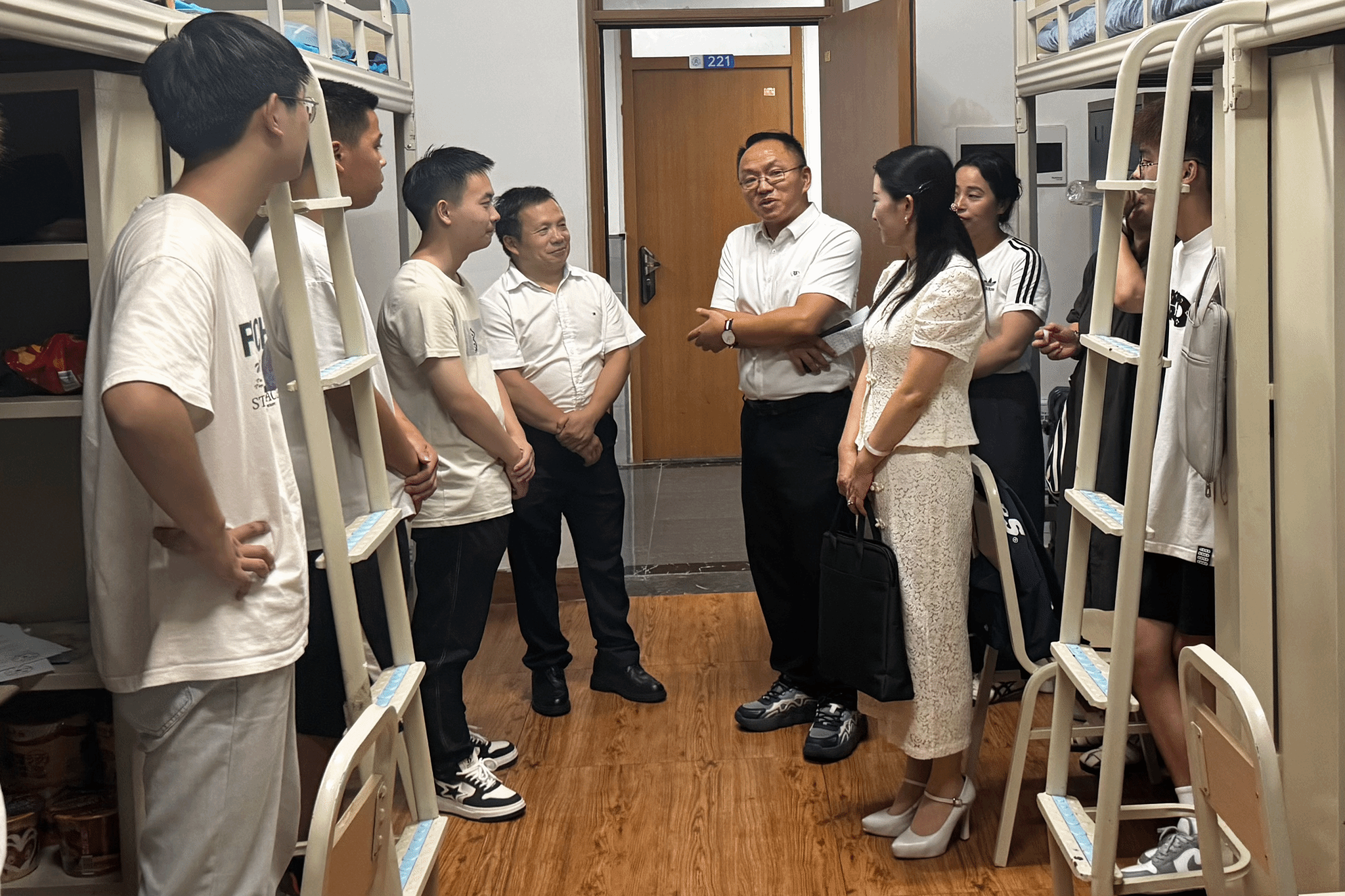 在本次迎新过程中,学院通过制定方案、培训志愿者、领导现场指导等形式,以“一站式”服务为新生消除报到不便。新生报道工作完成后,高杨族、庄丽娟两位新生班主任为新生开展了主题班会并组织观看“开学第一课”,帮助新生明确成长方向。随后,党委书记邓小明、院长谭安富、党委副书记管银凤、副院长刘德会等领导以见面会形式搭建起师生交流桥梁,通过专业解读和互动分享强化新生对思政专业的认识。最后,各领导深入新生宿舍走访慰问,既传递“以生为本”的育人理念,又让新生感受到学院无微不至的人文关怀。