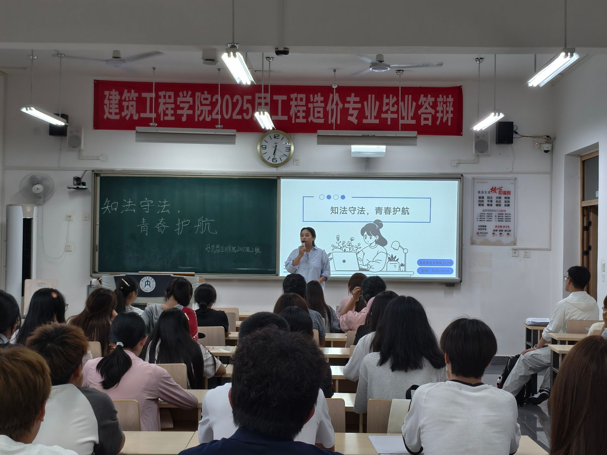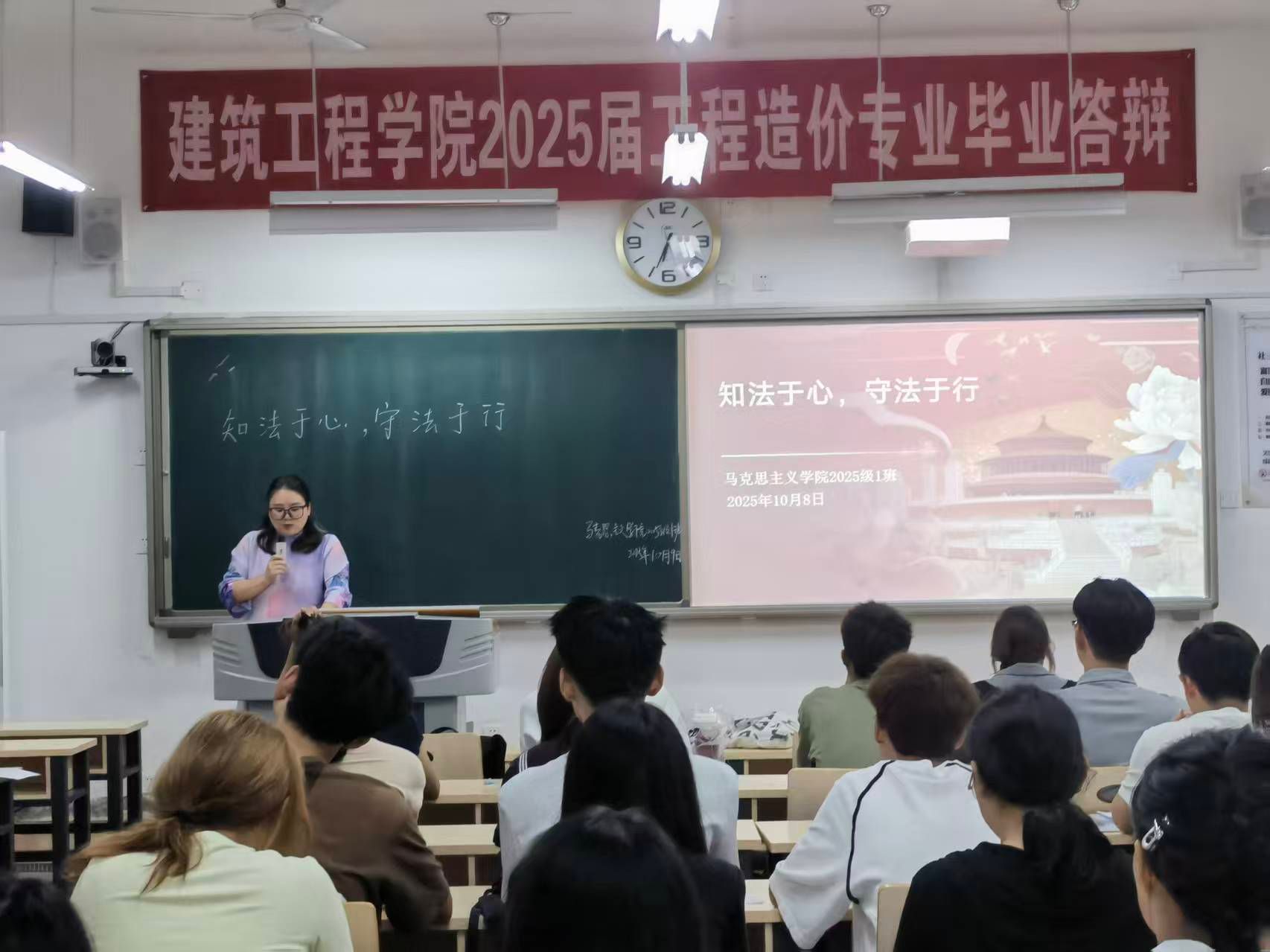 为推动习近平法治思想与青年学生成长深度融合,我院各班于10月8日在明德楼召开了主题为“知法于心,守法于行”的法治教育主题班会。本次班会由我院2025级各班班主任主讲,全体新生积极参与。