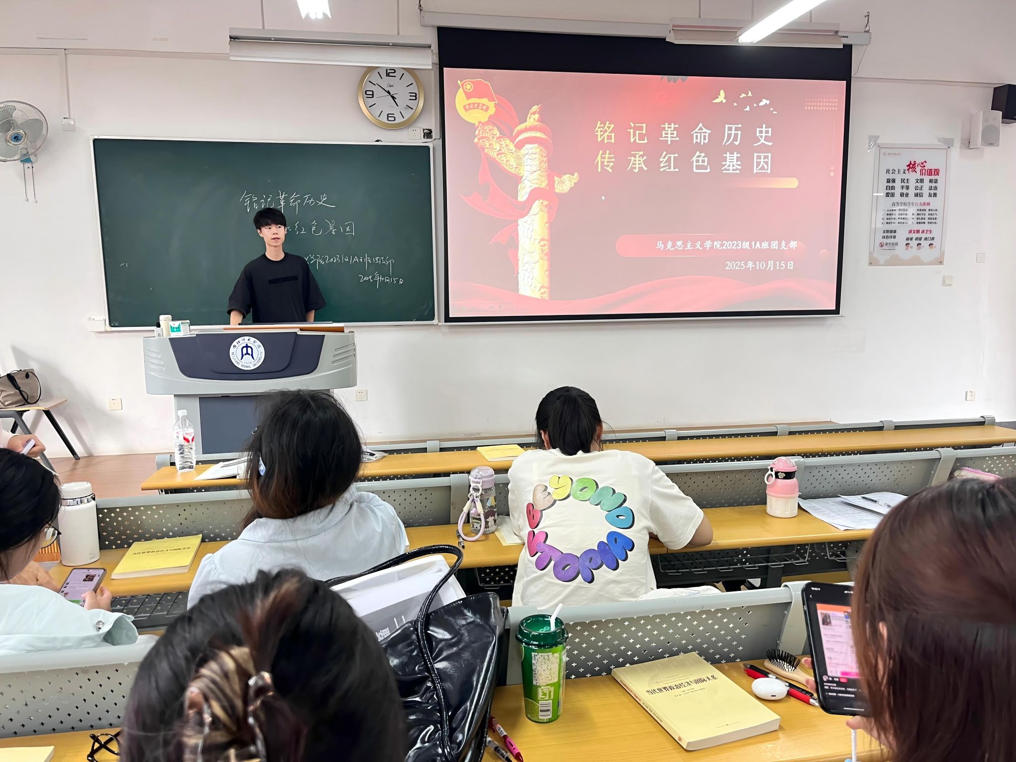 为引导青年学生厚植家国情怀、传承红色基因、践行时代担当,我院各班于2025年10月在明德楼相继开展了系列团组织生活会。本次团组织生活会由我院各班班主任主讲,全体学生积极参加。