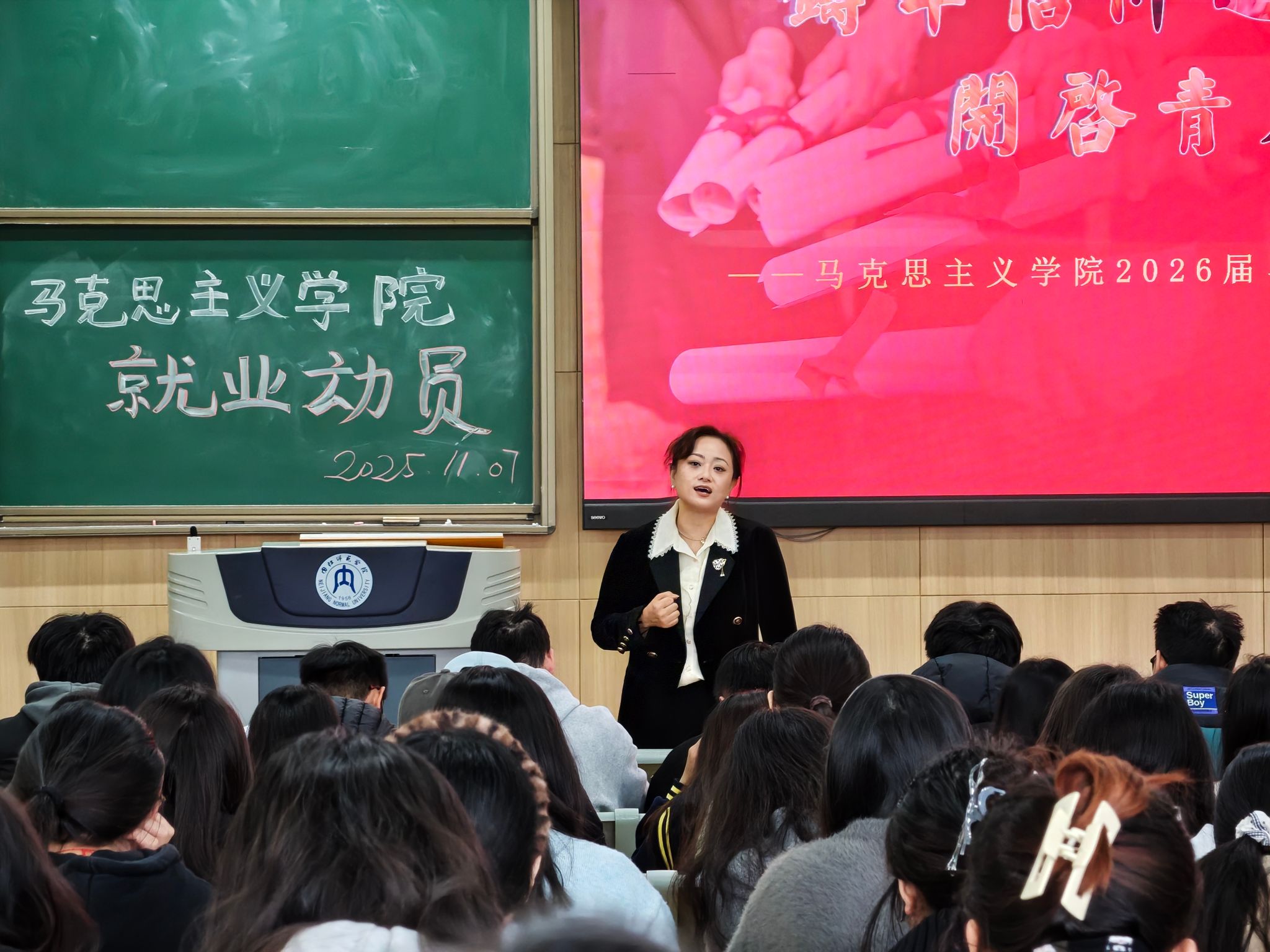 为帮助我院2026届毕业生把握就业形势、明确就业目标,我院于11月7日在明德楼B111召开了2026届毕业班学子就业动员大会,本次会议由我院党委书记邓小明、副书记刘正丽主讲,学工办全体辅导员出席,全体毕业班学生积极参加。