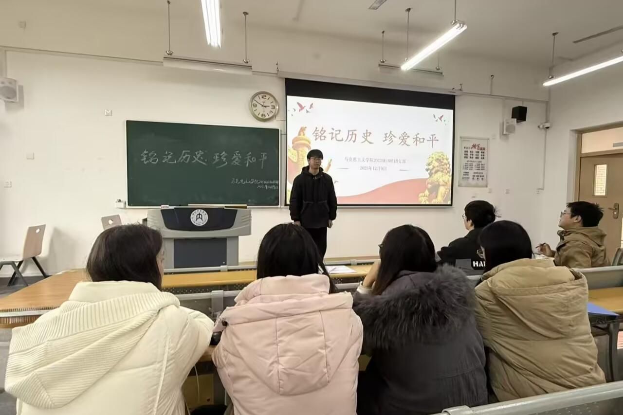 本次活动采用线上线下相结合的方式,围绕三大核心主题展开:首先以“法治精神践行”为核心,各班主任组织同学们围绕宪法主题开展专题学习,进一步加深了同学们对法治精神的理解,明晰青年肩负的法治责任;其次以“和平信念传承”为核心,各班通过历史研讨、故事分享等形式回溯历史,引导同学们厚植铭记历史、珍爱和平的家国情怀,在思想碰撞中凝聚青春共识;最后以“红色使命担当”为核心,各班围绕纪念“一二·九”运动开展了系列主题活动,带领同学们重温那段救亡图存的峥嵘岁月,激励同学们以青春之力扛起时代使命,用实际行动诠释青年担当。