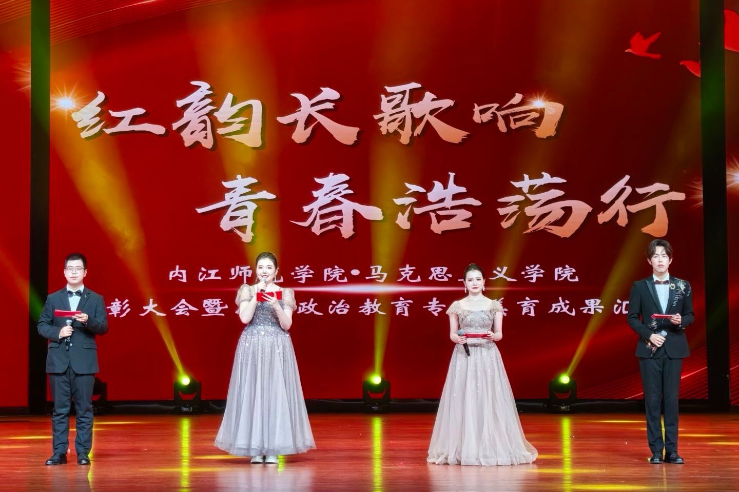 为欢迎我院2025级新生,展示我院美育成果,我院于12月7日晚七点在苌弘剧院隆重举行了以“红韵长歌响·青春浩荡行”——马克思主义学院2025级思想政治教育专业表彰大会暨美育成果汇报。