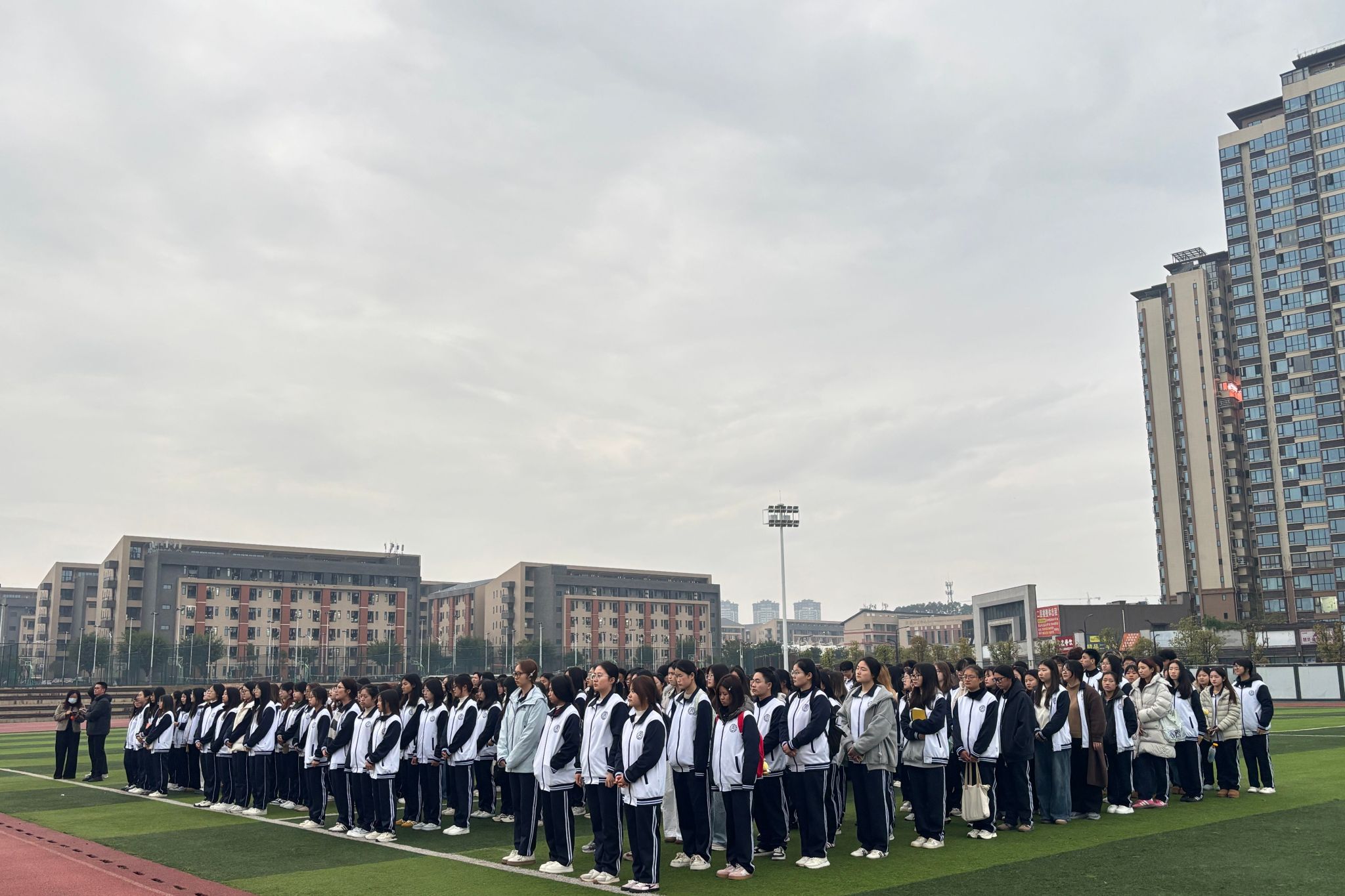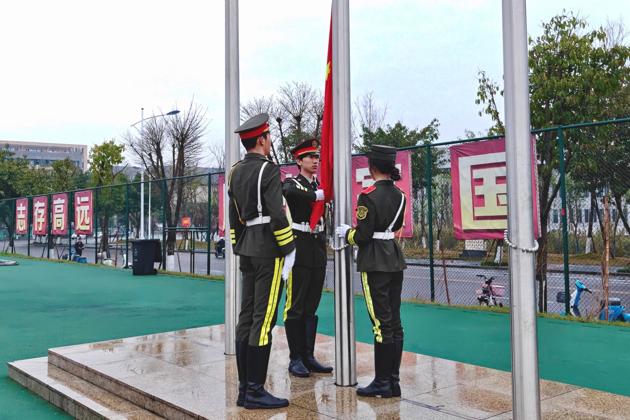 清晨七时许,全体学生在足球场整齐列队,庄严肃立。国旗护卫队迈着铿锵有力的步伐,护送五星红旗至升旗台。伴随着雄壮激昂的《义勇军进行曲》奏响,鲜艳的五星红旗冉冉升起,迎风飘扬。全体师生肃立注目,齐声高唱国歌,表达对祖国的无限热爱与崇高敬意。